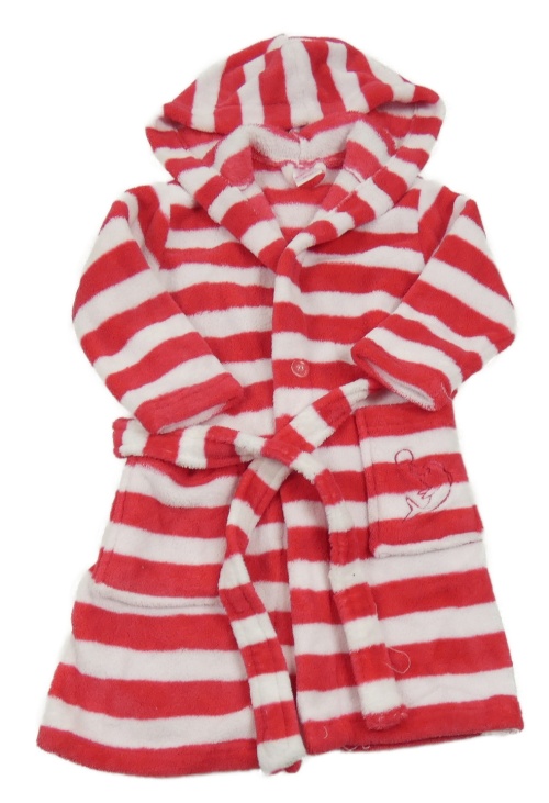 Růžovo-bílý pruhovaný chlupatý župan s kapucí Alive