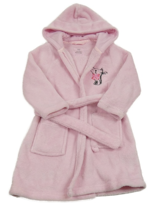 Světlerůžový plyšový župan s kočičkou a kapucí YD