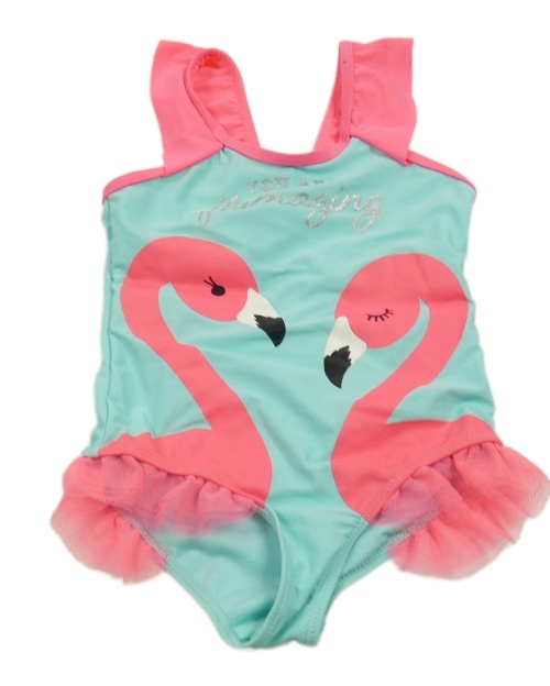Modro-růžové neonové jednodílné plavky s plameňáky a volánky Dopodopo