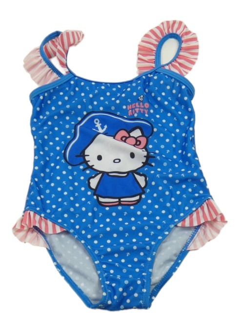 Modro-bílo-růžové puntíkaté jednodílné plavky s Hello Kitty C&A