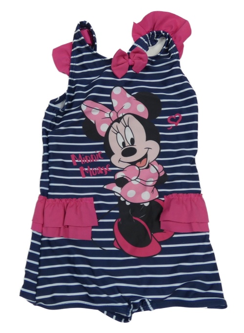 Tmavomodro-bílý pruhované nohavičkové plavky s Minnií Disney