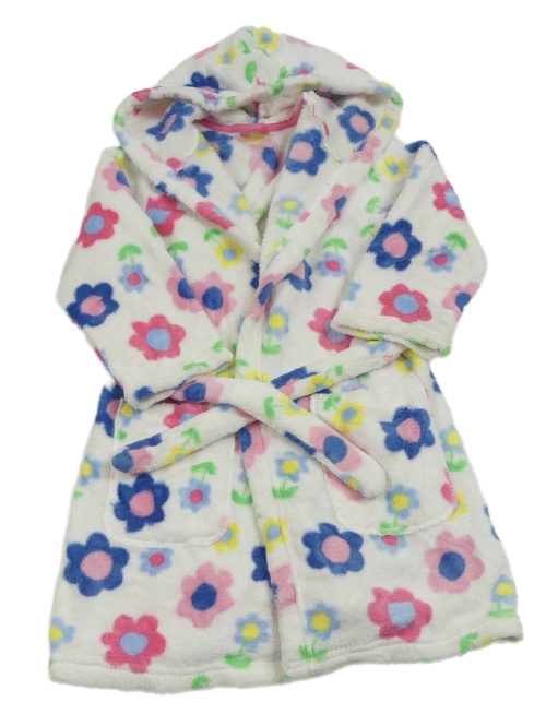 Bílý chlupatý župan s kytičkami a kapucí M&S