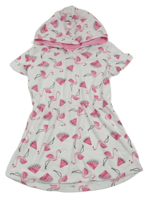 Bílé froté županové šaty s plameňáky a melouny a kapucí Matalan
