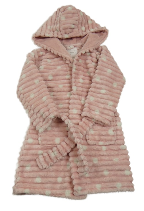 Světleůrůžovo-bílý puntíkatý žebrovaný plyšový župan s kapucí F&F