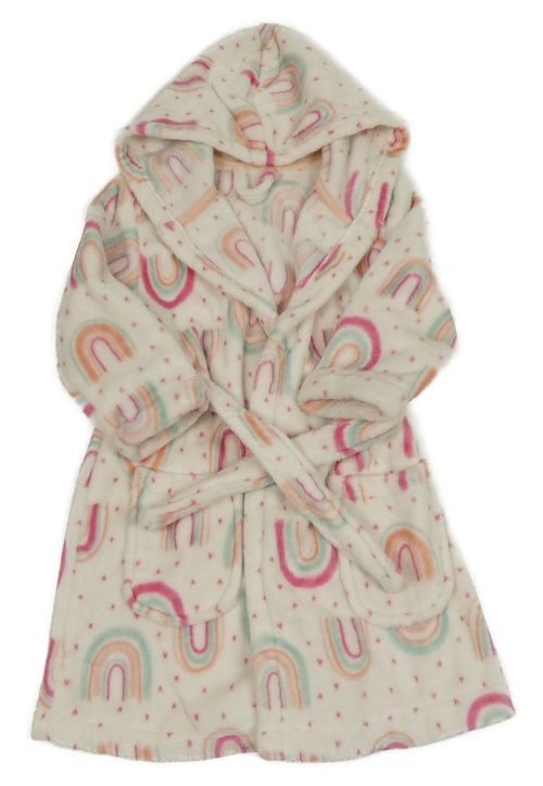 Bílo-růžový vzorovaný plyšový župan s duhami a kapucí George