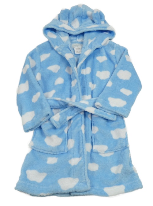 Světlemodrý plyšový župan s obláčky a kapucí s oušky Pitter Patter