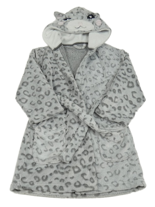 Šedý leopardí chlupatý župan s čumákem na kapuci George