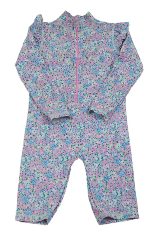 Tyrkysový UV overal s kytičkami a volánky Dunnes