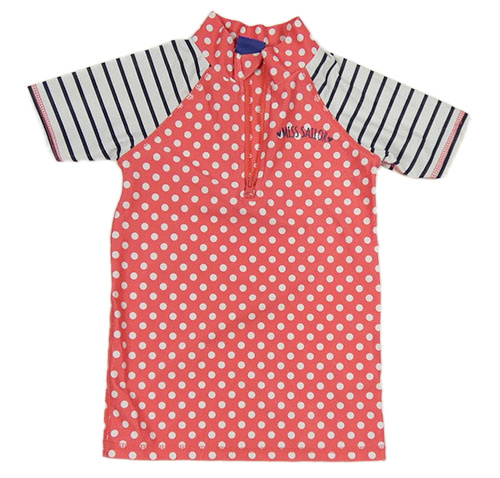 Jahodovo-bílo-tmavomoré UV tričko s puntíky a pruhy lupilu