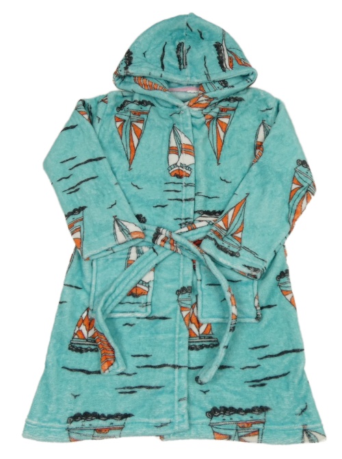 Modrozelený plyšový župan s plachetnicemi a kapucí