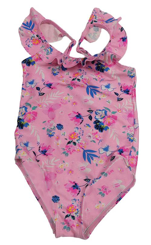 Růžové jednodílné plavky s kytičkami a lístečky a volánky dopodopo