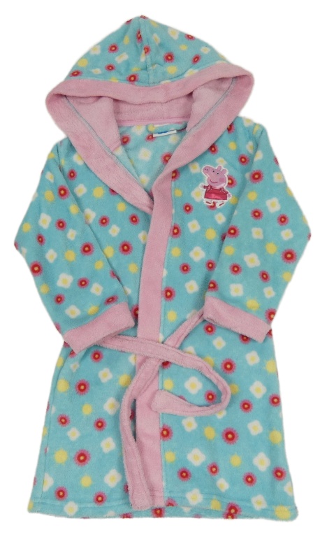 Světlemodrý květovaný chlupatý župan s Pepinou a kapucí