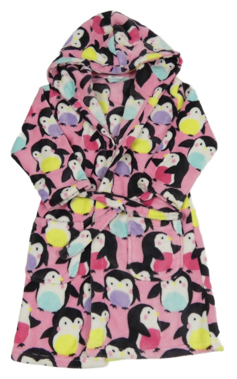 Růžový chlupatý župan s tučňáky a kapucí M&S