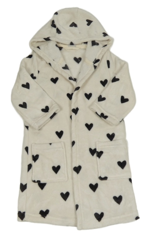 Bílý chlupatý župan se srdíčky a kapucí H&M