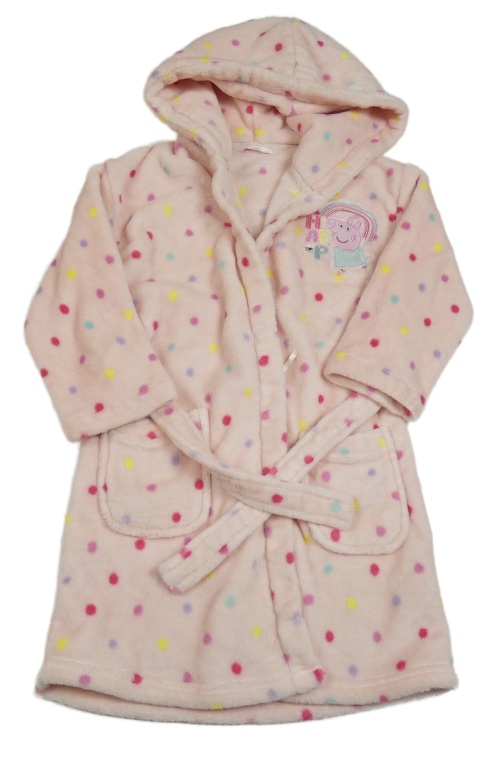 Světlerůžovo-barevný puntíkatý plyšový župan s Peppa Pig a kapucí M&S
