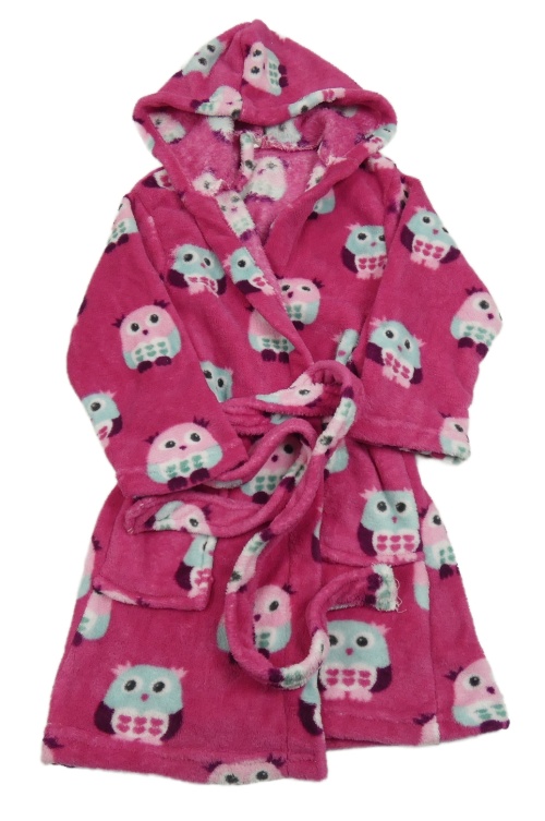 Fuchsiový chlupatý župan se sovičkami a kapucí