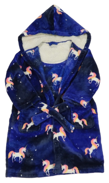 Tmavomodrý chlupatý župan s jednorožci a kapucí Bluezoo