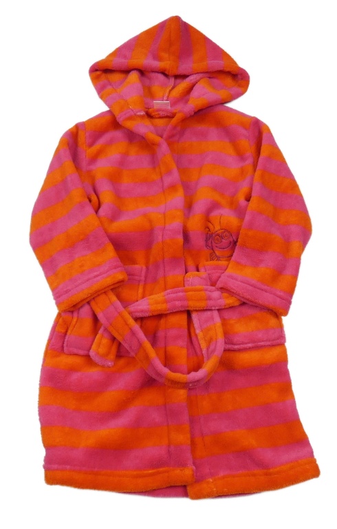 Tmavorůžovo/oranžový pruhovaný plyšový župan s mořským živočichem a kapucí alive