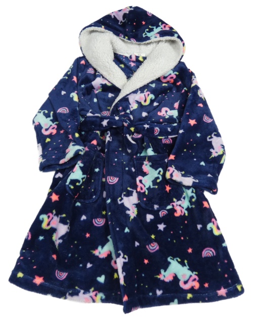 Tmavomodrý chlupatý župan s jednorožci a kapucí Minikidz