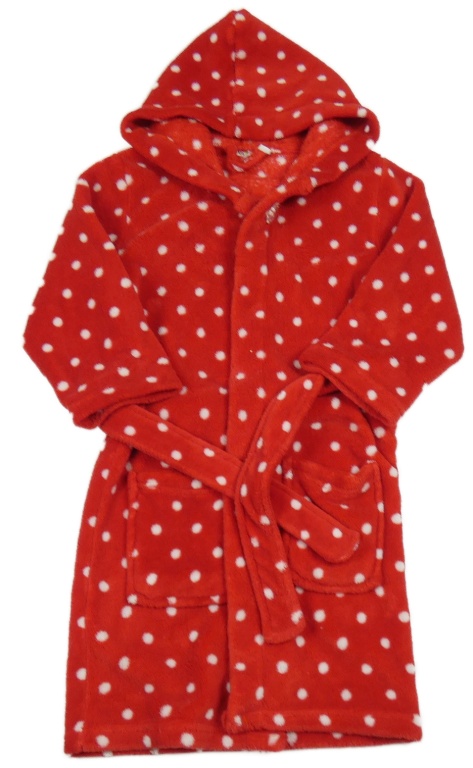 Červený puntíkovaný chlupatý župan s páskem Playshoes