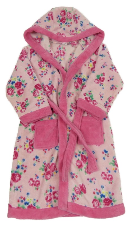 Růžový květovaný chlupatý župan s kapucí Miniclub