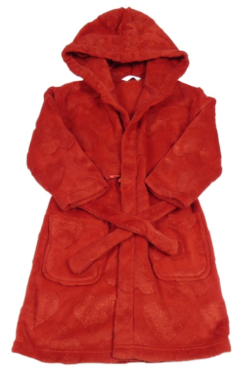 Červený chlupatý župan se srdíčky a kapucí M&S
