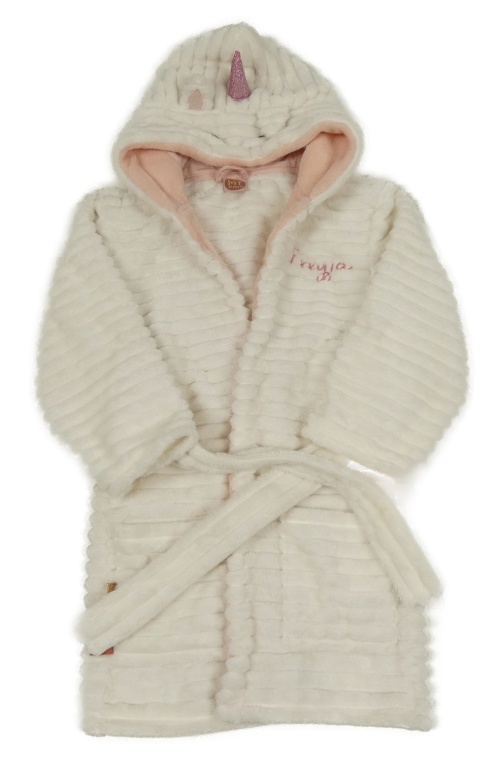 Bílý žebrovaný plyšový župan s kapucí - jednorožec
