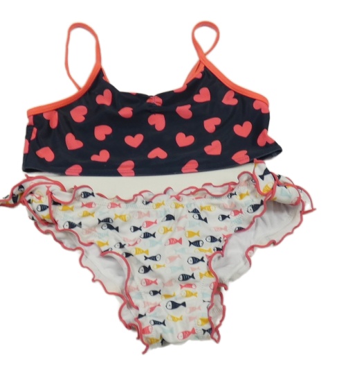 Černo-bílé dvoudílné plavky se srdíčky a rybami