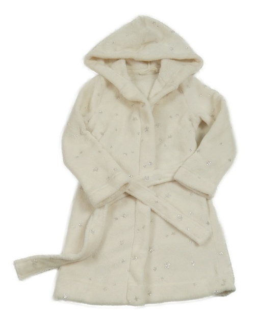 Smetanový chlupatý župan s hvězdami a kapucí