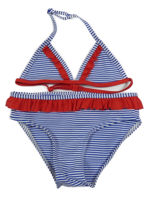 Modro-bílo-červené pruhované dvoudílné plavky s volánky C&A