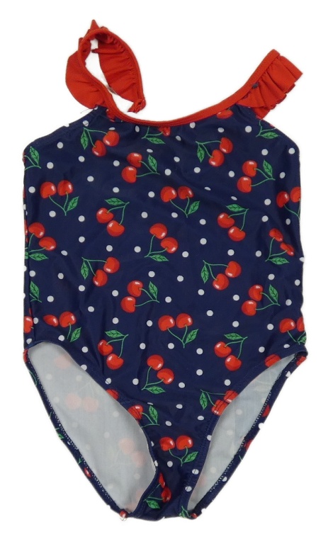 Tmavomodro-červené jednodílné plavky s třešněmi