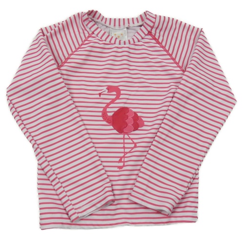 Bílo-růžové pruhované UV triko s plameňákem Pusblu