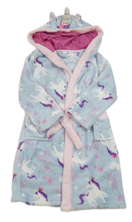 Světlemodrý chlupatý župan s jednorožci a kapucí