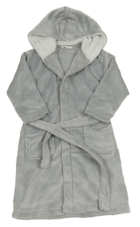 Šedý plyšový župan se třpytivými srdíčky a kapucí M&S