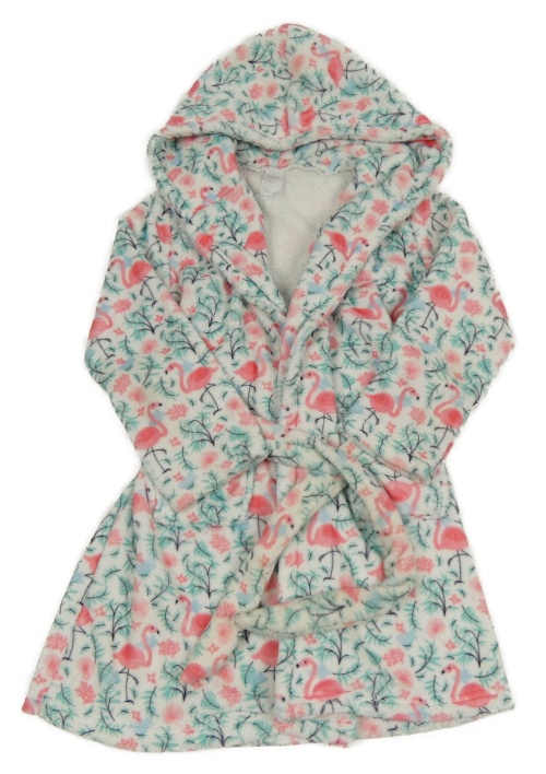 Bílý plyšový župan s plameňáky a větvičkami a kapucí