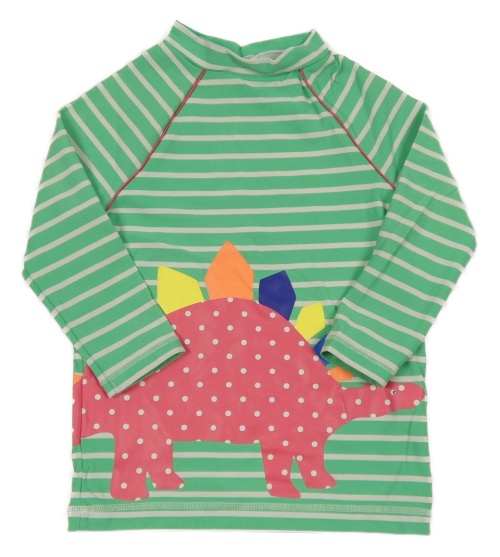 Zeleno-bílé pruhované UV triko s dinosaurem Mini Boden