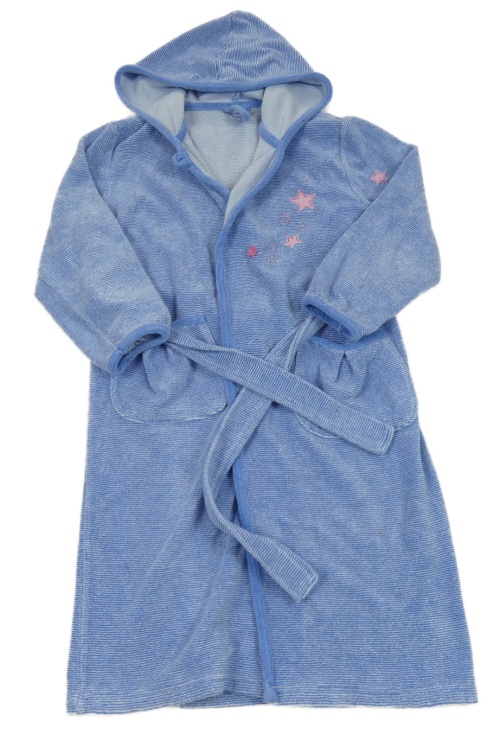 Modrý proužkatý froté župan s kytičkami a kapucí