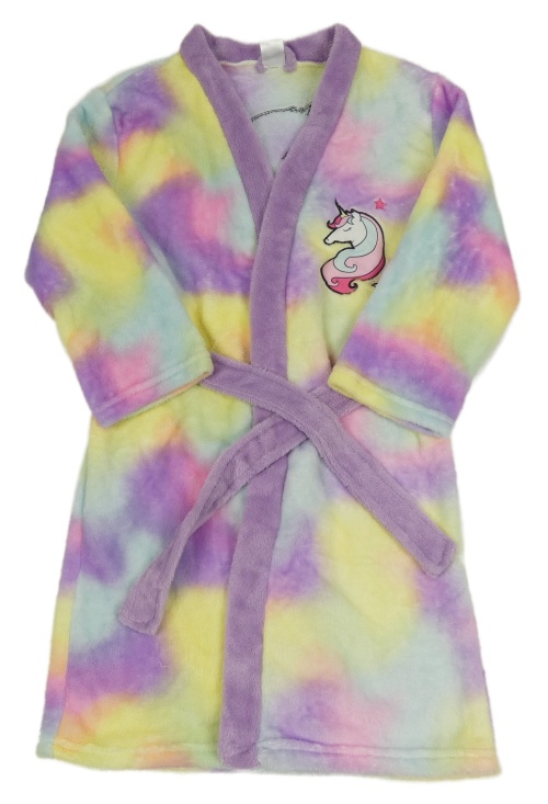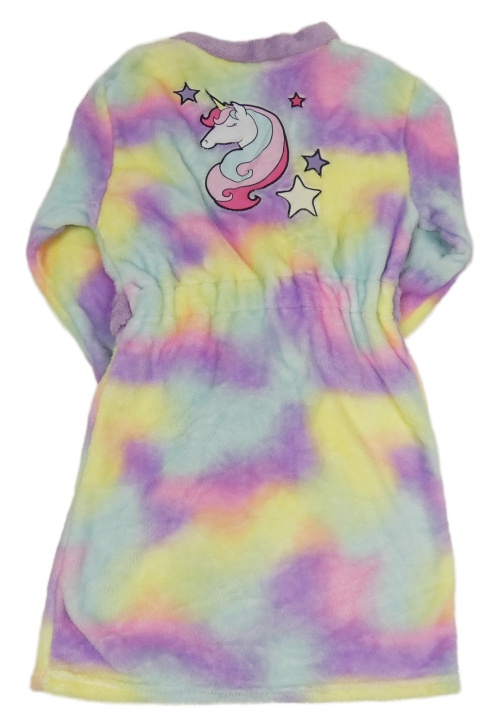 Barevný pruhovaný chlupatý župan s jednorožcem