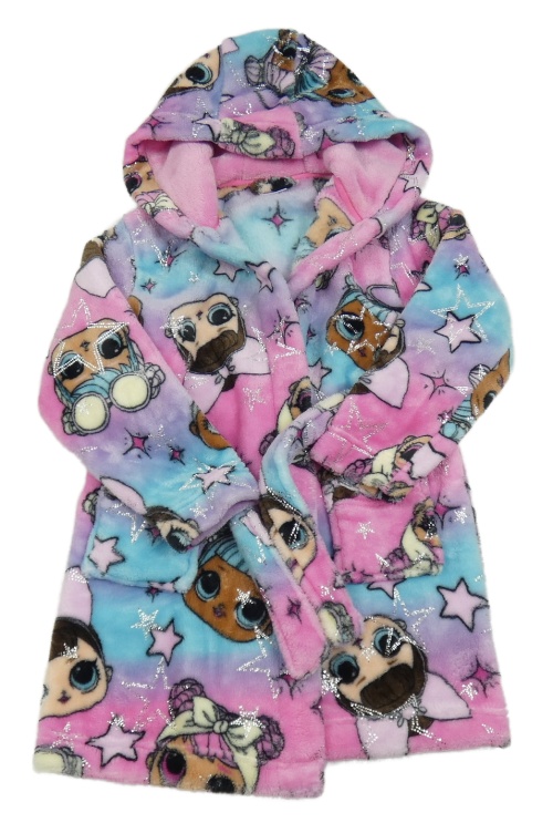Růžovo-modrý chlupatý župan s L.O.L. a kapucí Matalan