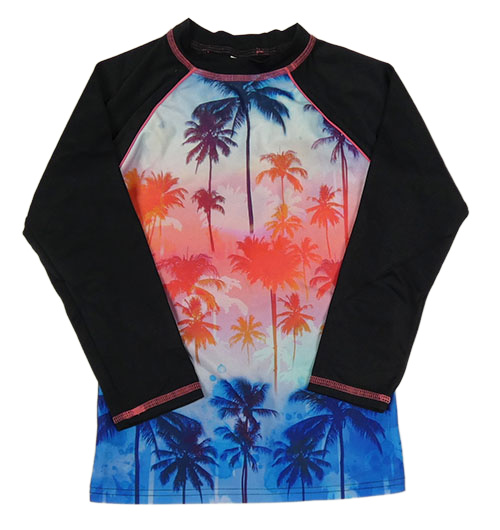 Růžovo-bílo-modro-černé UV triko s palmami C&A