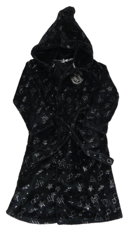 Černý plyšový župan s obrázky a kapucí - Harry Potter