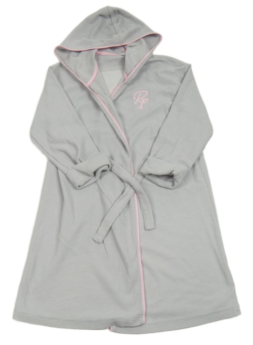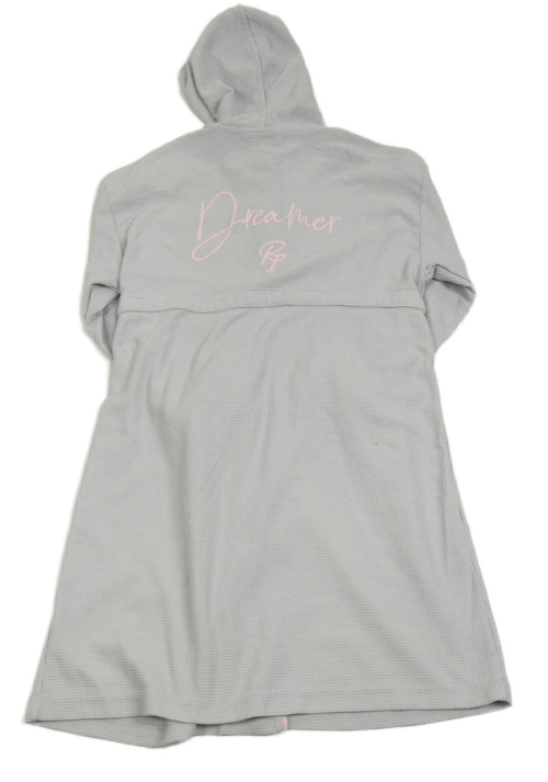 Světlešedo-růžový žebrovaný župan s nápisem a kapucí River Island