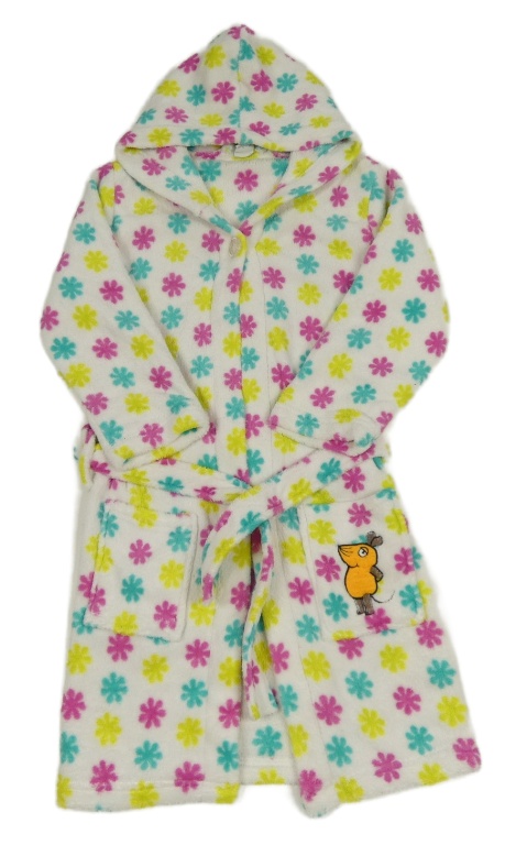 Bílý vzorovaný chlupatý župan s myškou a kapucí PlayShoes