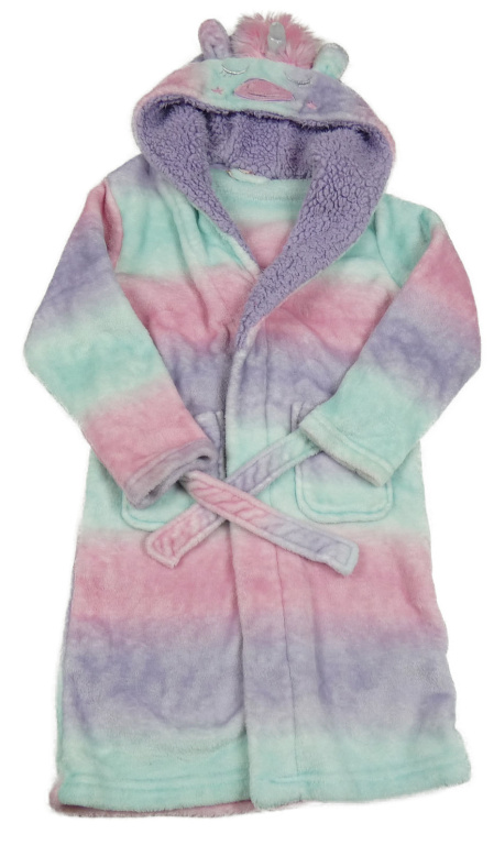 Tyrkysovo-růžovo-fialový plyšový župan s kapucí - Jednorožec