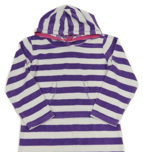 Bílo-fialový pruhovaný froté župan s kapucí