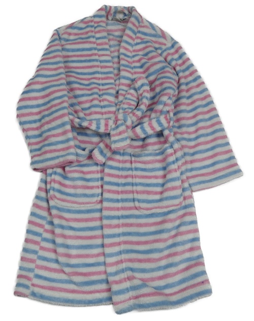 Bílo-růžovo-modrý pruhovaný chlupatý župan Alive