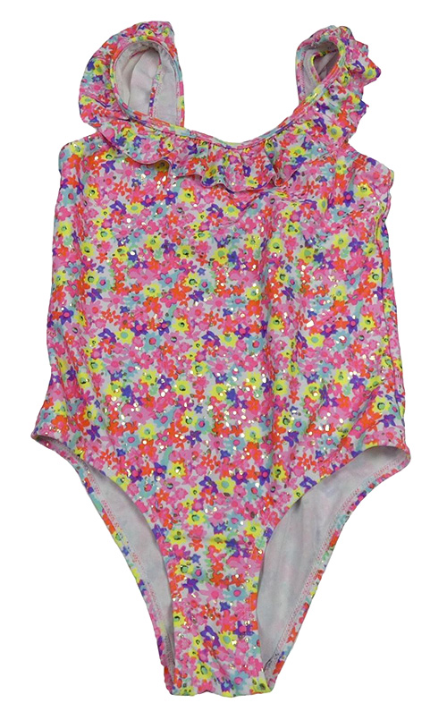 Růžovo-barevné květované jednodílné plavky s volánem Primark