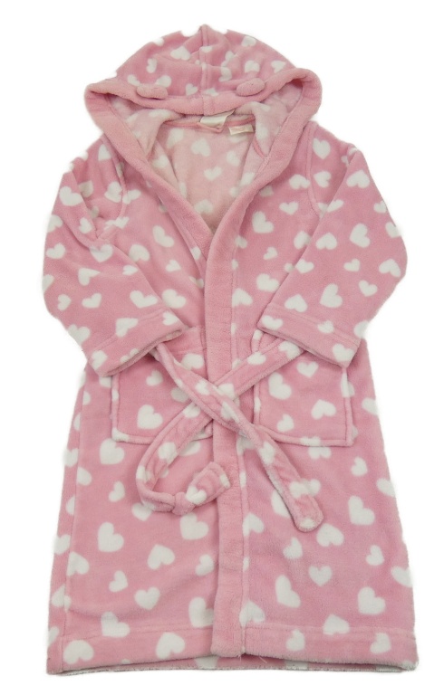 Růžovo-bílý plyšový župan se srdíčky a kapucí H&M