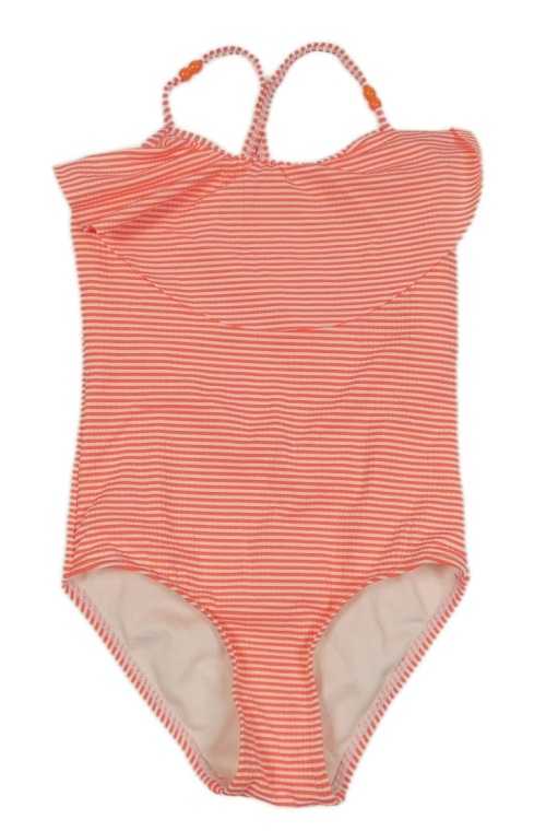 Neonově oranžovo-bílé pruhované jednodílné plavky s volánem Y.F.K.