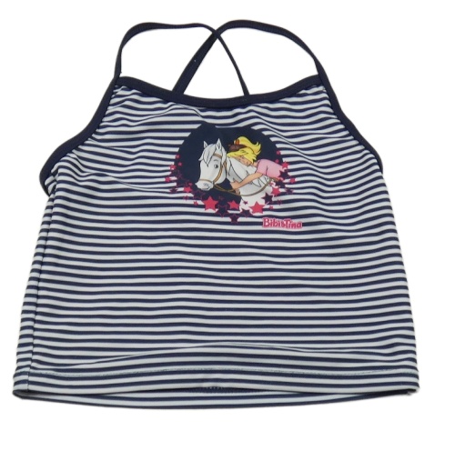 Tmavomodro-bílý pruhovaný plavkový top s potiskem Bibi&Tina